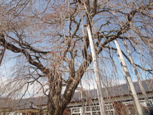 天候です。杵原学校の大枝垂れ桜も順調に