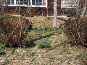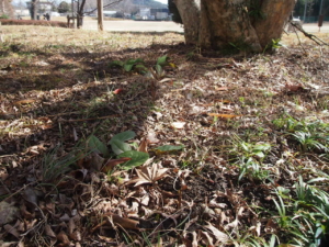樹下の水仙、校舎脇の水仙、河津桜は順調に