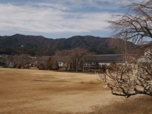 校庭の東側からは木曽山脈(中央アルプス)方面が